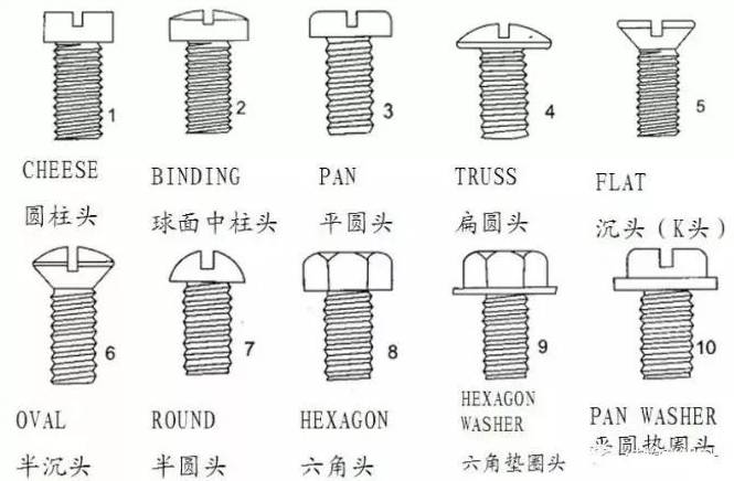 要了解螺絲螺栓,先要知道他們的類型、特征及功能: